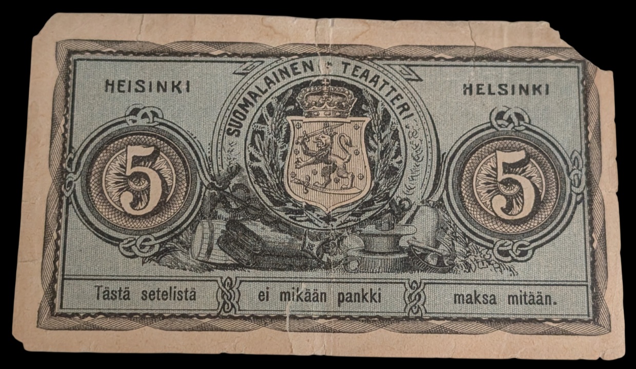 Suomen Pankki 5 mk 1918 & Suomen Yhdyspankki 1 mk 1918, Ex. SNY
