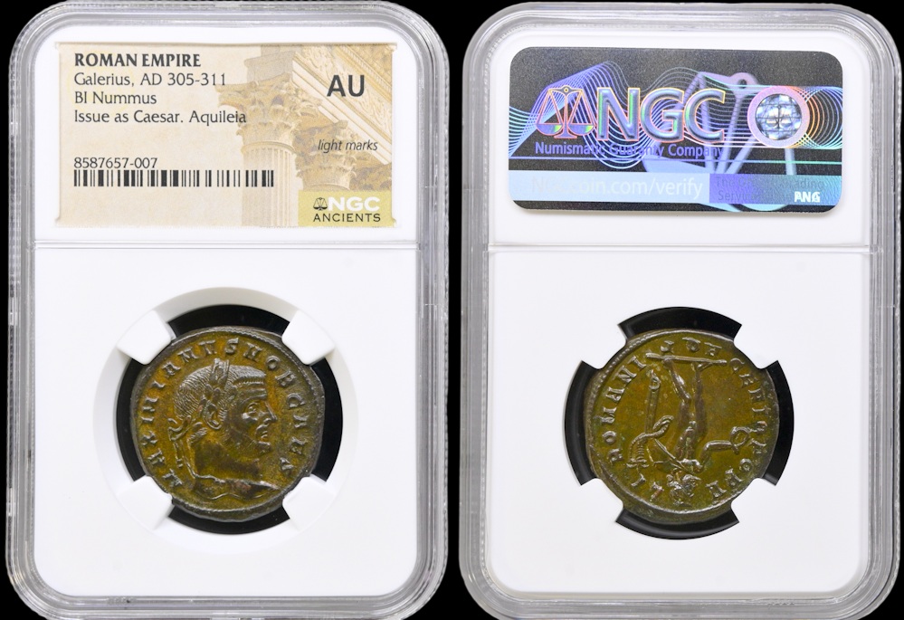 Galerius as Caesar 305-311 jKr., BI Nummus, Aquileia, NGC AU