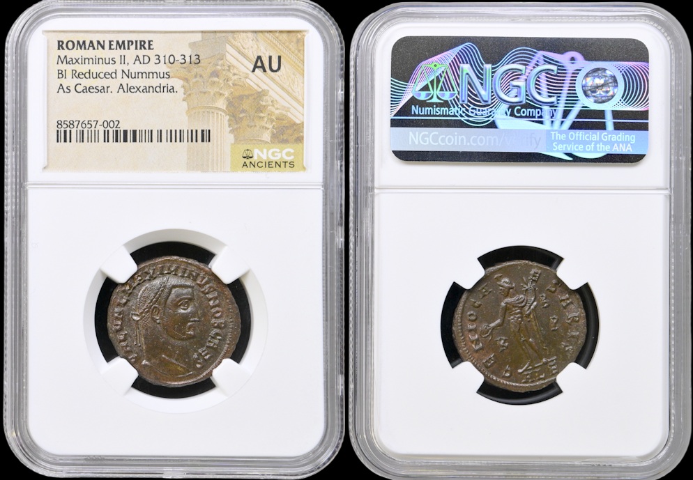 Maximinus II 310-313 jKr., BI Reduced Nummus, Aleksandria, NGC AU