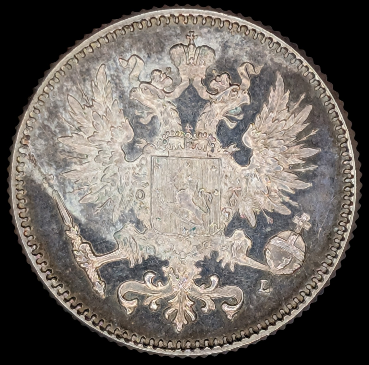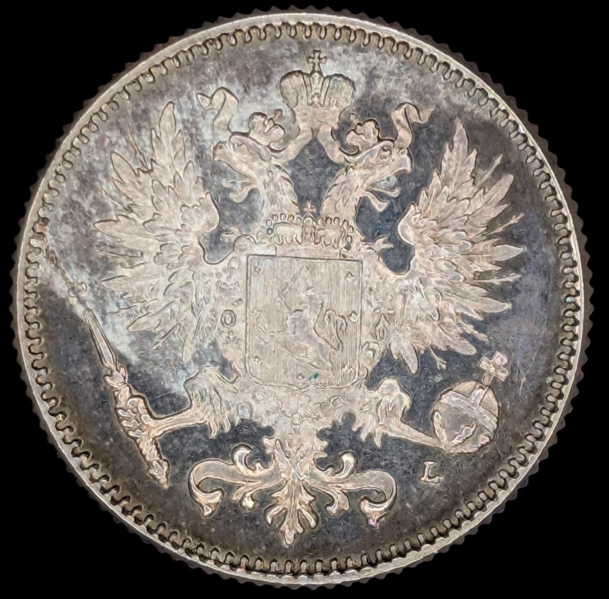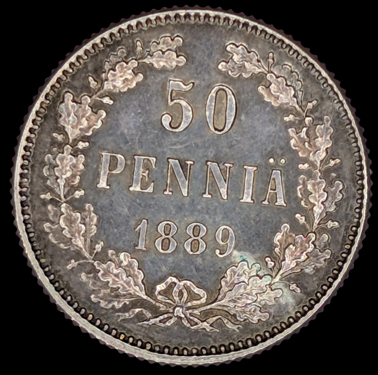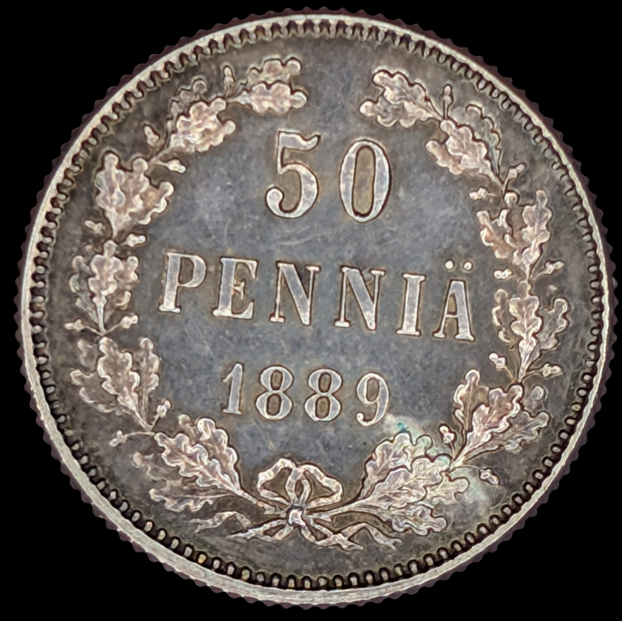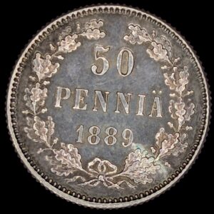 50 Penniä 1889, Prooflike Restrike Bofore 1895 with m/1892-1917 Coat of Arms