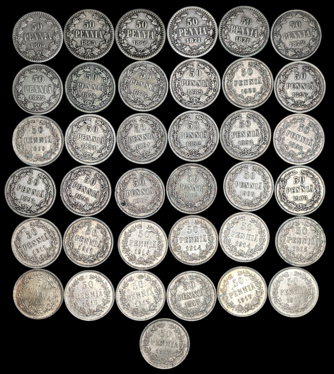 Finland 1865-1917 50 Pennia 37pcs