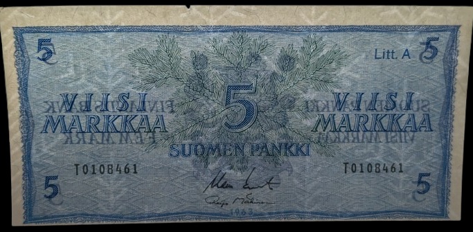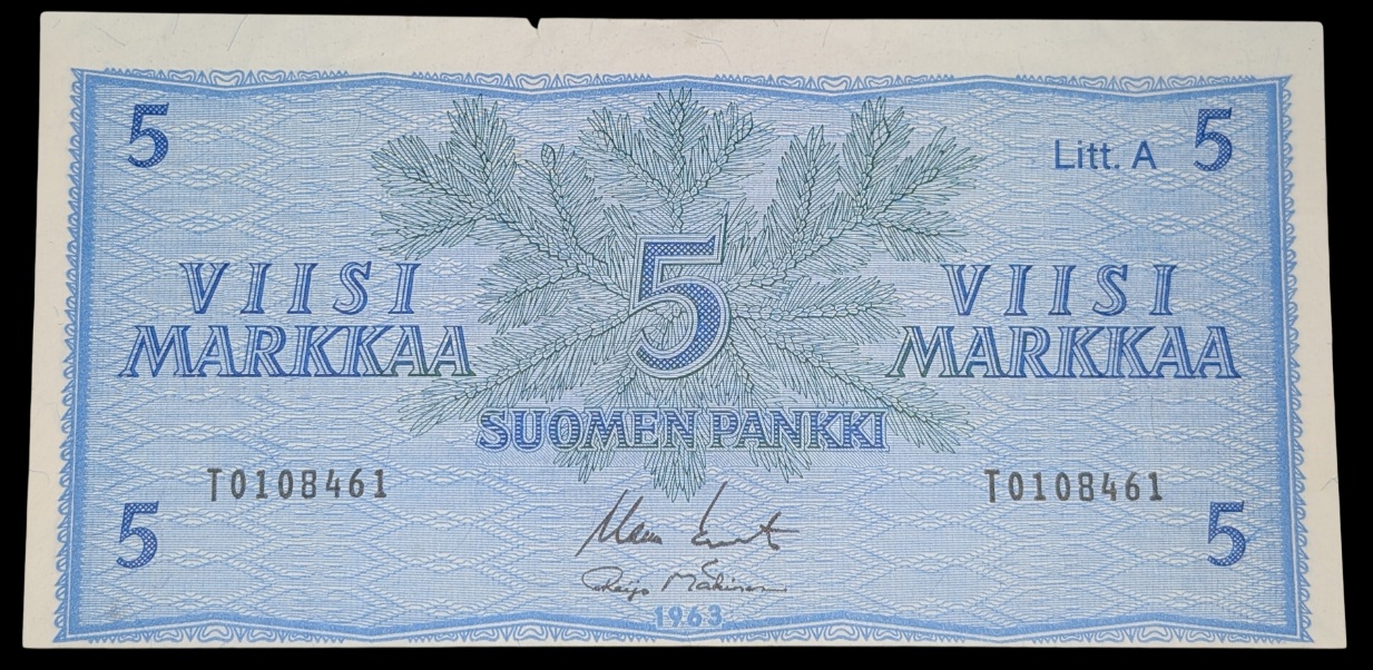 Finland 1963 5 Markkaa Litt. A T-Series “Replacement”