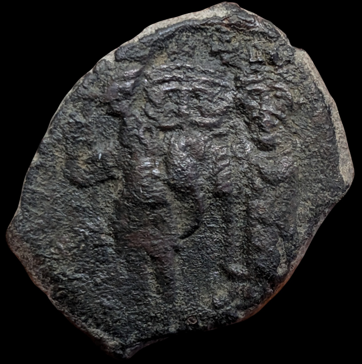 Obv: Oval counterstamp containing facing busts of long-bearded Heraclius and short-bearded Heraclius Constantine