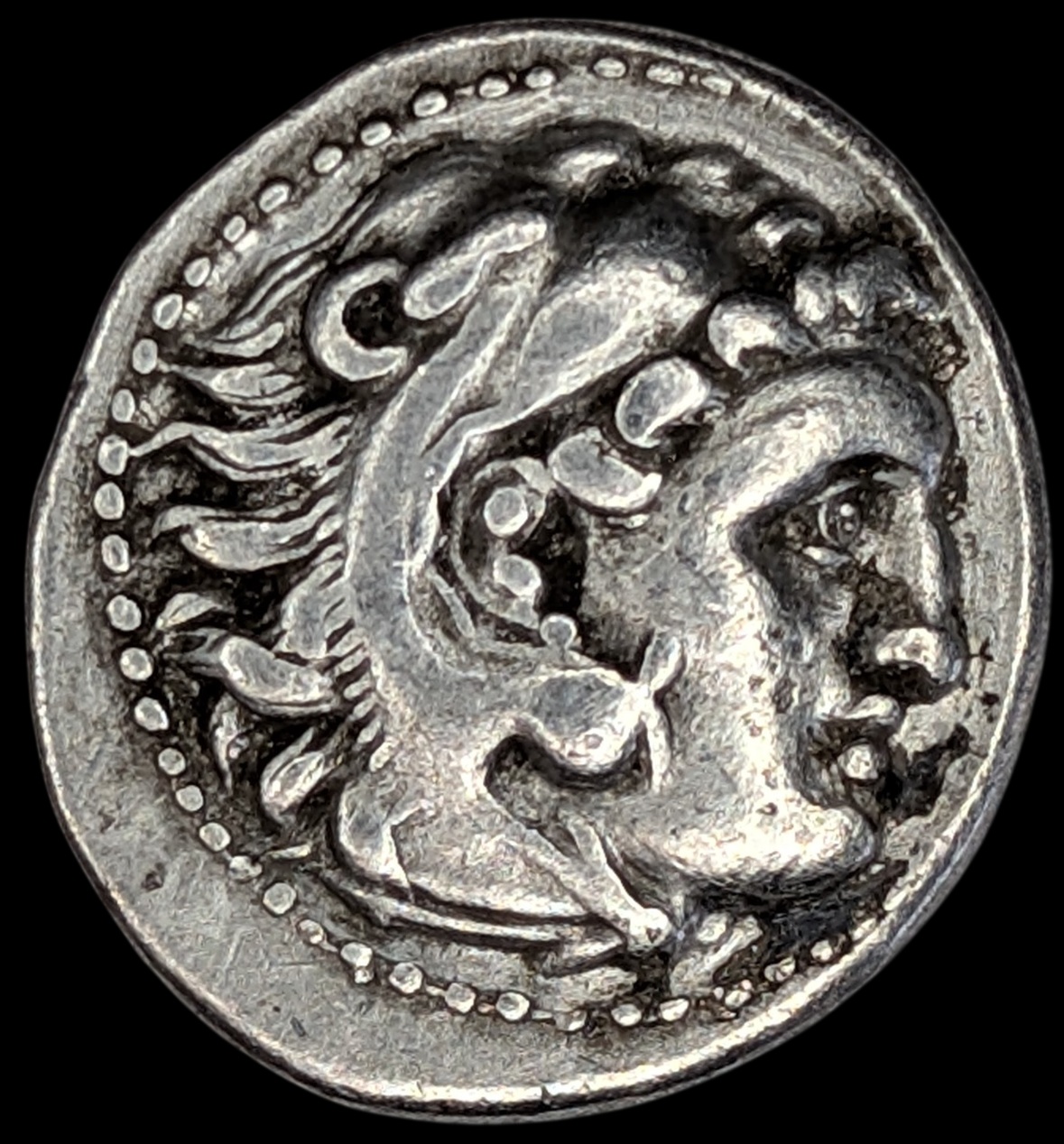 Obv: Head of Herakles to right, wearing lion skin headdress